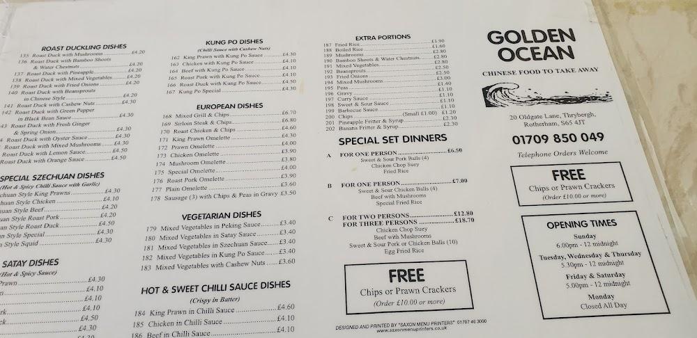 The Golden Ocean stands out in Thrybergh for its commitment to quality and flavor. Situated on Oldgate Lane, this Chinese takeaway has been a community favorite for years. Nestled within a vibrant area, it’s easily accessible with free street parking available.